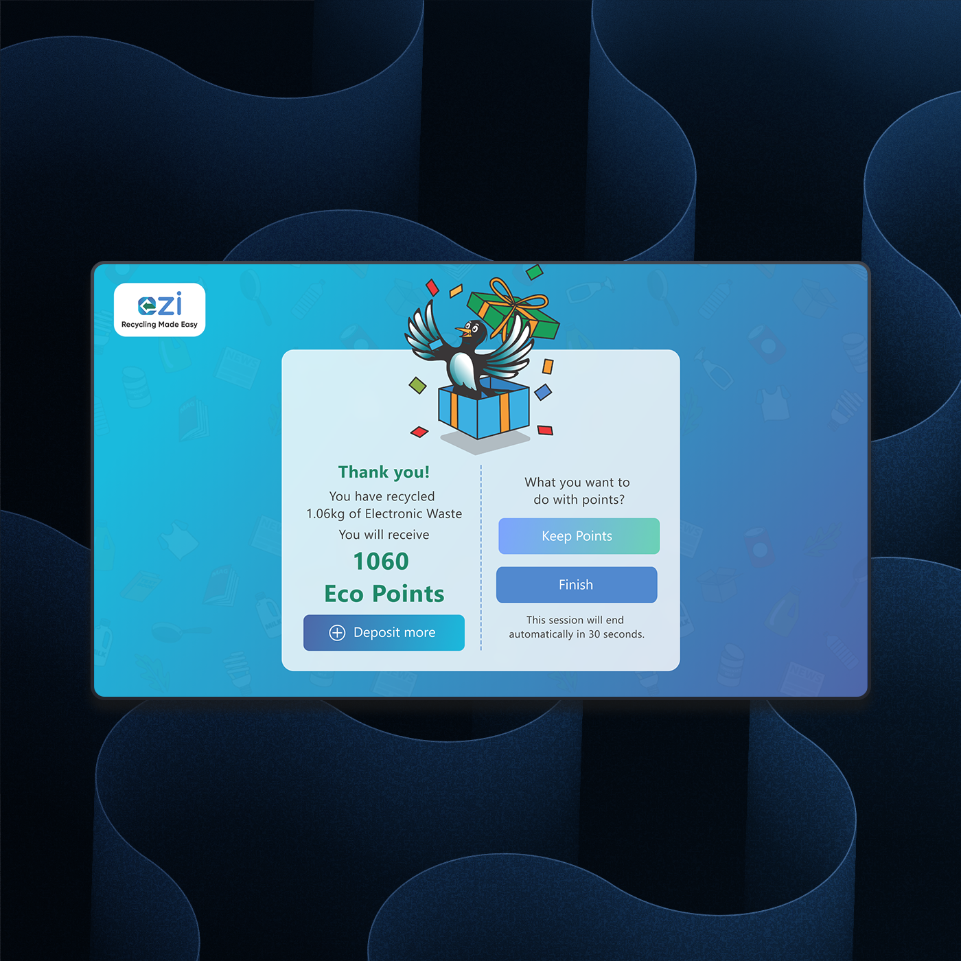 Ezi Recycling Kiosk is an innovative solution designed to encourage responsible disposal of electronic waste. The kiosk provides a seamless and rewarding recycling experience by weighing e-waste items and awarding points based on their weight.
