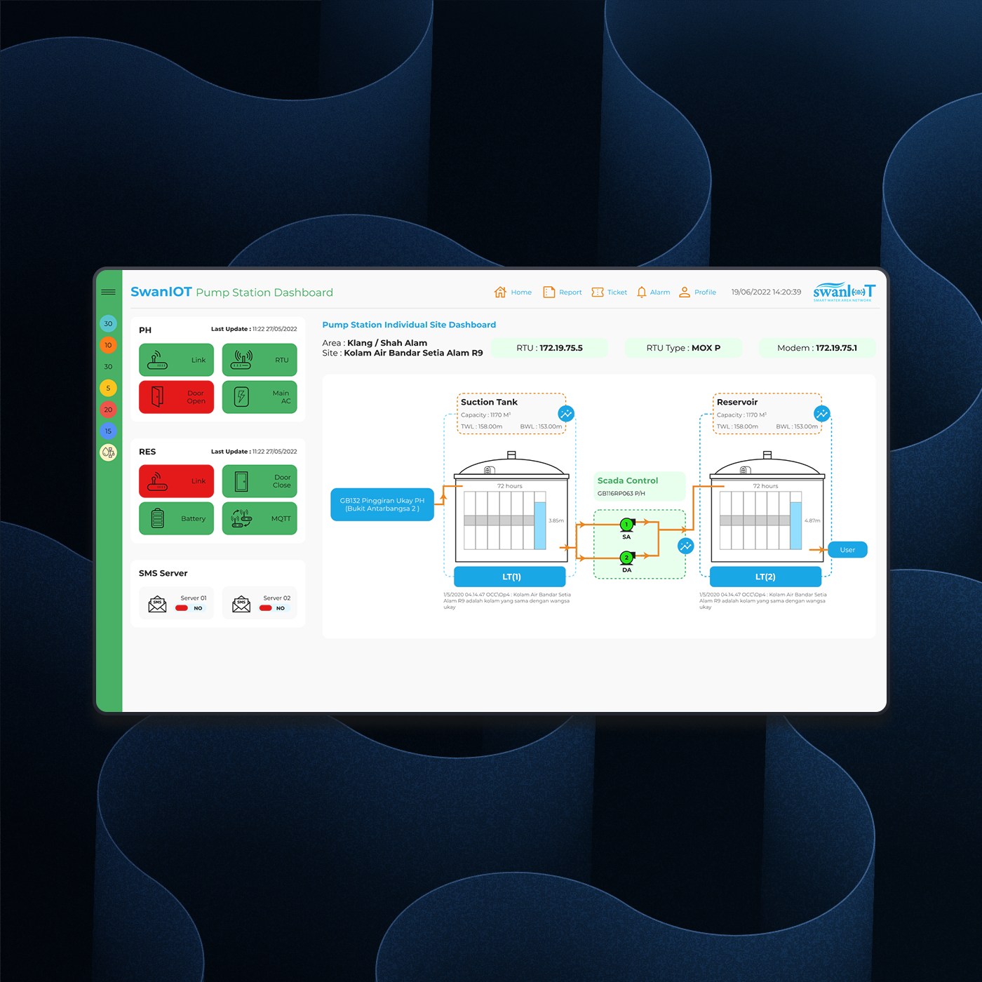 I worked on the Swaniot project, which focuses on integrating IoT solutions for smarter operations. The system enables real-time monitoring, data collection, and reporting to improve efficiency and decision-making.